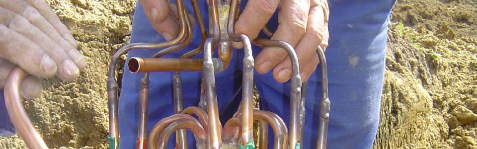 Bei der Direktverdampfung verdampft das Arbeitsmittel der Wärmepumpe in Hart- PVC ummantelten Kupferrohren und entzieht dabei dem Erdreich Wärme-Energie. Es sind weder Soleumwälzpumpen noch Zwischenwärmetauscher nötig. Der Verdichter übernimmt, dabei den Arbeitsmittel Transport.